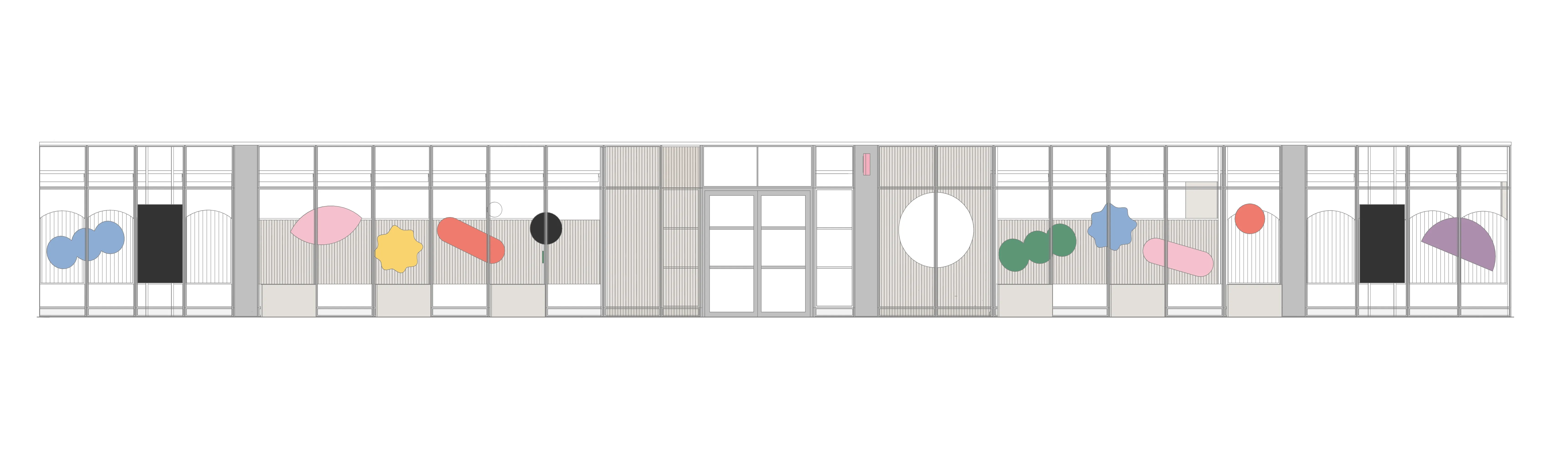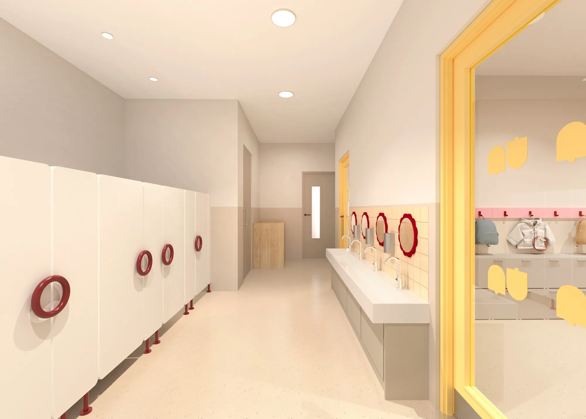 With exciting extracurriculars, daily outings, and a thriving parent community, the programme of the space is as important to our designs as the physical aspects. This is highlighted in a display window showing rotating artwork and golden thread topics from the day to day curriculum of the space.